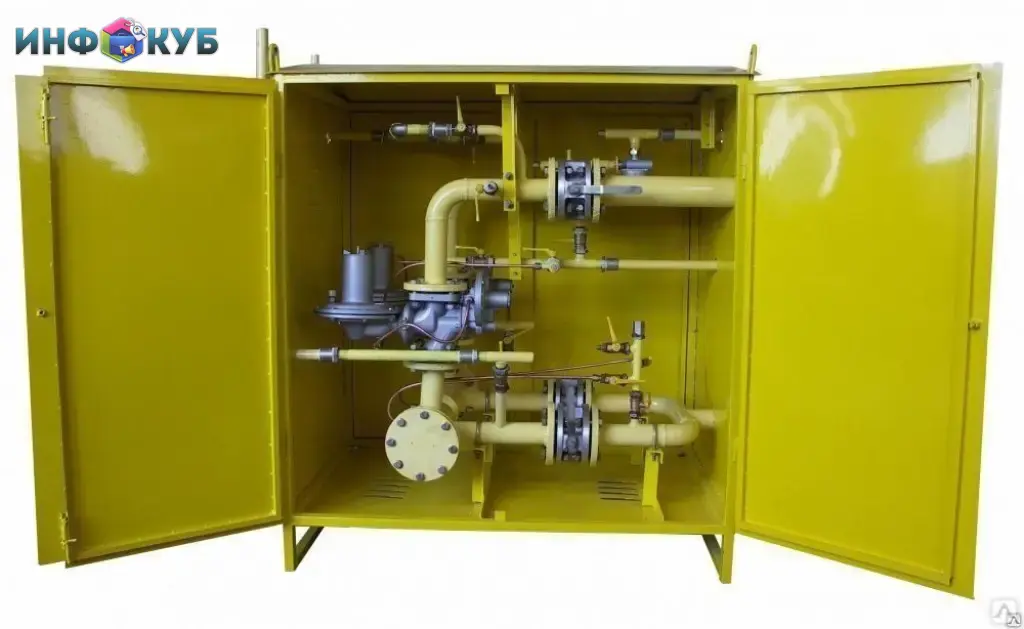 ГРПШ представляет собой шкаф, в котором размещено технологическое оборудование: регулятор давления газа, краны и т.д.